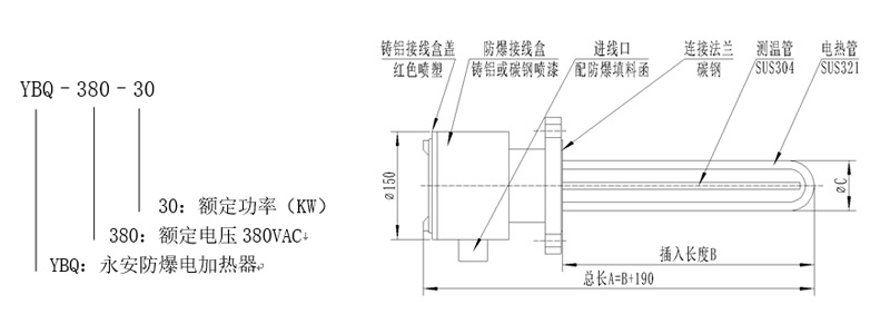 浸入式防爆电加热器,是永安公司根据石油、化工、冶金、军工等行业的润滑油箱、物料储罐、反应釜、电镀槽等的加热需要,开发研制的直接浸入介质加热的设备。该款加热器曾被应用于石油钻机润滑系统,经受住了俄罗斯西伯利亚冬天-50℃的严酷考验。