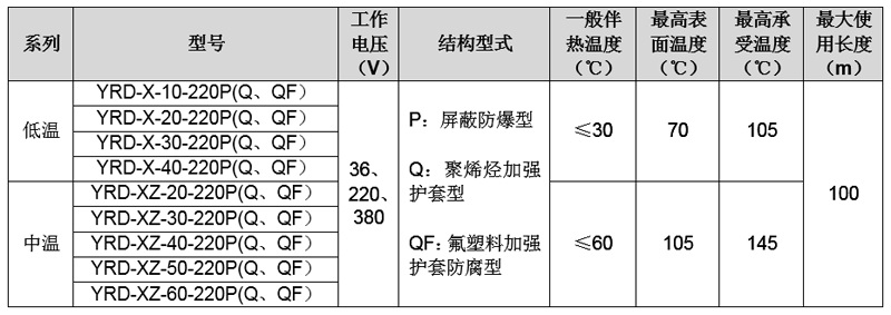 2)最高发热温度不会超过70℃(YRD-X低温型)或105℃(YRD-XZ中温型)